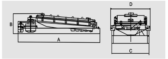 方形搖擺篩又稱往復篩,從方形搖擺篩篩體即篩箱運動軌跡來看,其驅動裝置所產生的動力是一繞定軸、方向呈一定規律變化的慣性力,其本質是由偏心輪繞定軸轉動所形成的往復慣性力。根據搖擺篩的結構特點及工作原理,其篩面一般為水平或微傾斜布置(傾斜角度為0°-5°)。