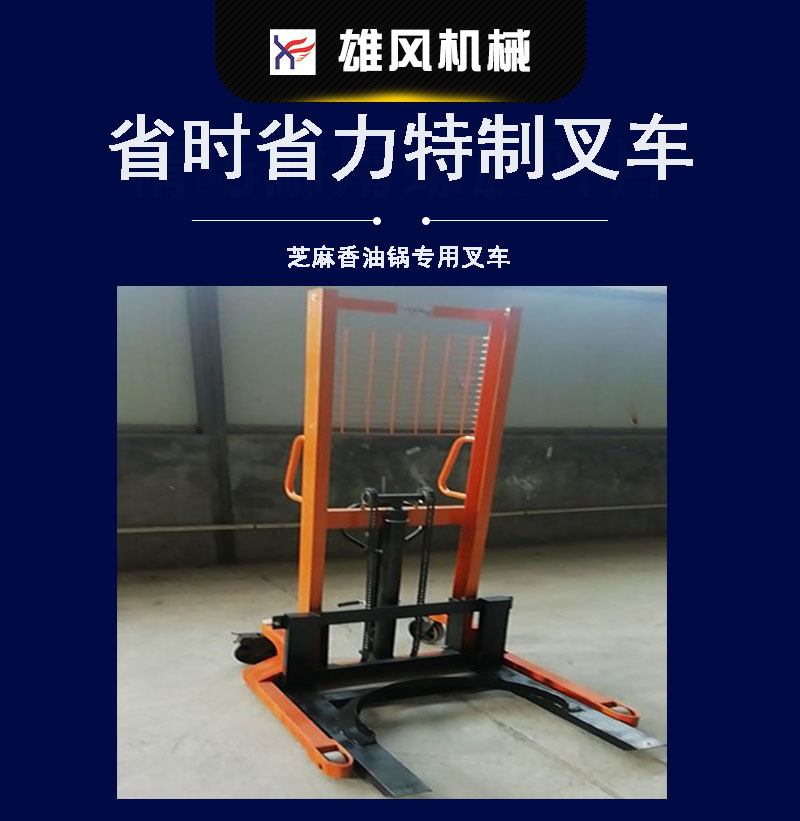 本叉車為 芝麻香油鍋專用叉車,可以上下移動,左右移動,并且叉臂可以落到**底部。方便作業工人操作,省時省力。